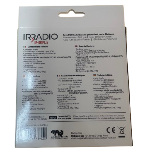 Cable HDMI de alta velocidad 8 K Ultra HD 2.1. medida 5 metros. Serie Gold. (conectores dorados) Resolución UHD 8K 4320P a 60 FPS, UHD 4 K 2160 P a 60FPS / 2K 1440P a 120FPS. Conductores de cobre de alta calidad AWG30/0,254 mm. Versión HCDP 2.3. Diámetro exterior del cable 6 mm. Protector de PVC + Nylon.