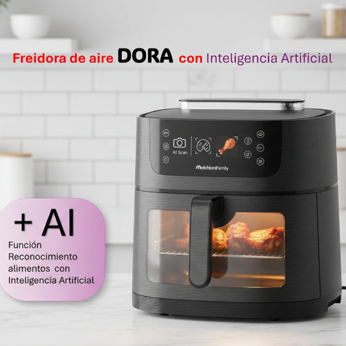 Freidora sin aceite 8 Litros con INTELIGENCIA ARITICIAL y con FUNCION VAPOR. Reconocimiento de los alimentos a través de un sensor optico (8 variedades). Doble resistencia (permite asados) Potencia 1.800 Watios. Teclado DIGITAL/TACTIL con pictorys. Temperatura ajustable de 50ºC/200ºC. Temporizador 60 min. Permite no solo freir y si cocinar alimentos, guisarlos y gratinarlos para dejarlos crujientes. Acabado aspecto fibra carbono. Medidas: 37,2×35,2×34 cm