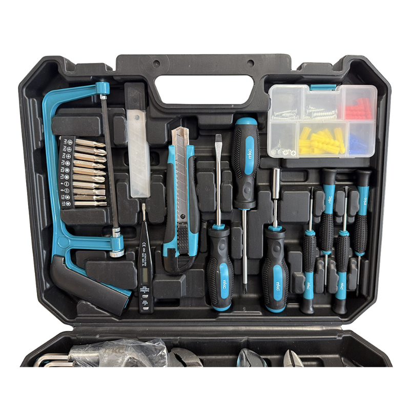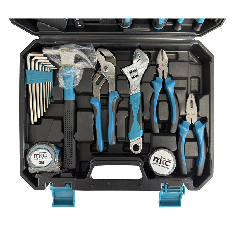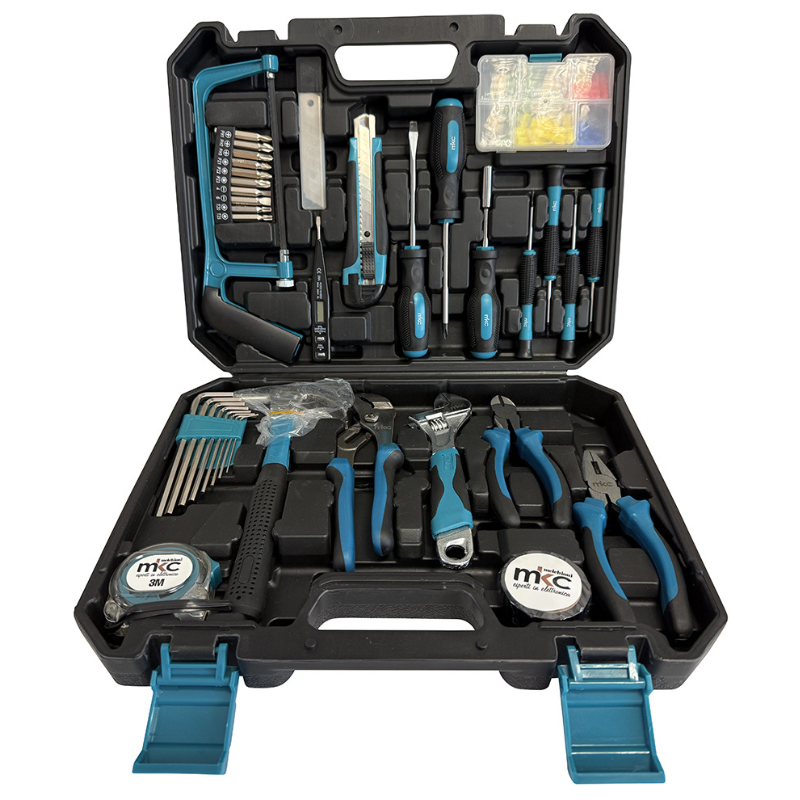 Maletín de herramientas de 105 piezas. Fabricado y pensado para el uso en el hogar. (correcta selección de herramientas): Se compone de: Alicates, Martillo, Set puntas. Destornilladores de precisión, Cutter, Metro, Tijeras, llaves Allen, tacos y tornillos. Medidas maletin: 31x23x7 cm