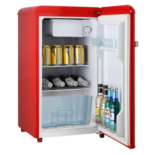 Mini Frigoríficos/Minibar de compresor. Capacidad útil 45 Litros. Diseño VINTAGE. Rango de frío -7ºC/11ºC. Clasificación energética E. 2 Estantes de cristal, un mini verdulero y 2 balcones en la puerta. Selector de potencia 6 niveles. Congelador interno a modo de mantenedor de los congelados. Perfecto e ideal para casas, barcos, oficina, casas de campo, Caravaning, trabajo... Color Rojo. Medidas: 58×40,70×43,40 cm