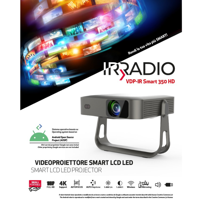 Proyector portatil 4 K alta definición c/Android 12 (AOSP)- IR-SMART 350HD