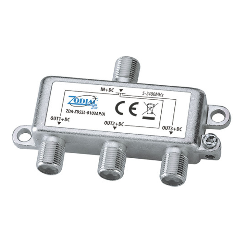 Spliter Standard 1 entrada/ 3 Salidas. Valido para TV Satélite y TV Terrestre. Paso DC. 5-24.000 MHz